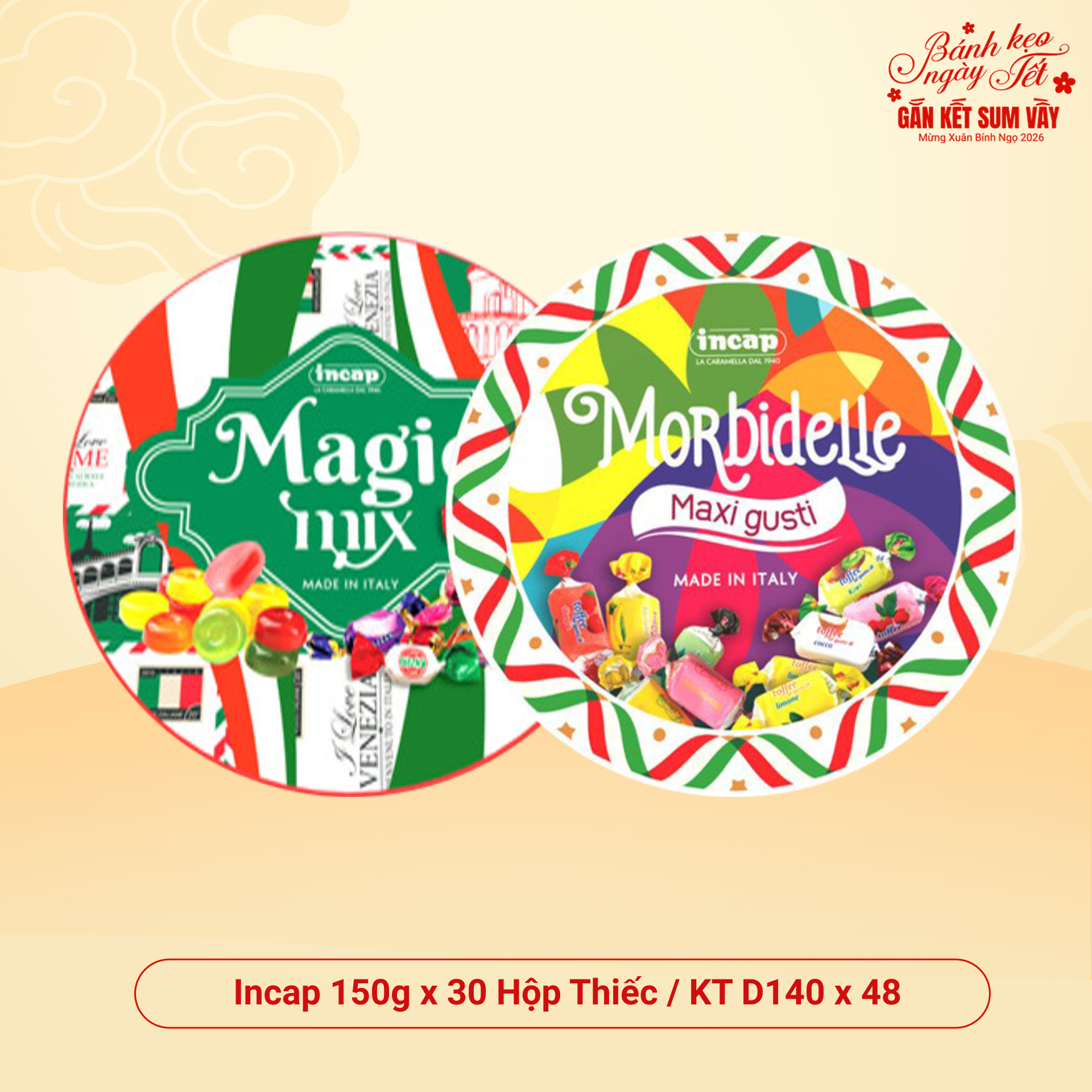 Kẹo INCAP Hộp Thiếc Tròn 150g (Magic mix – Mobidelle)